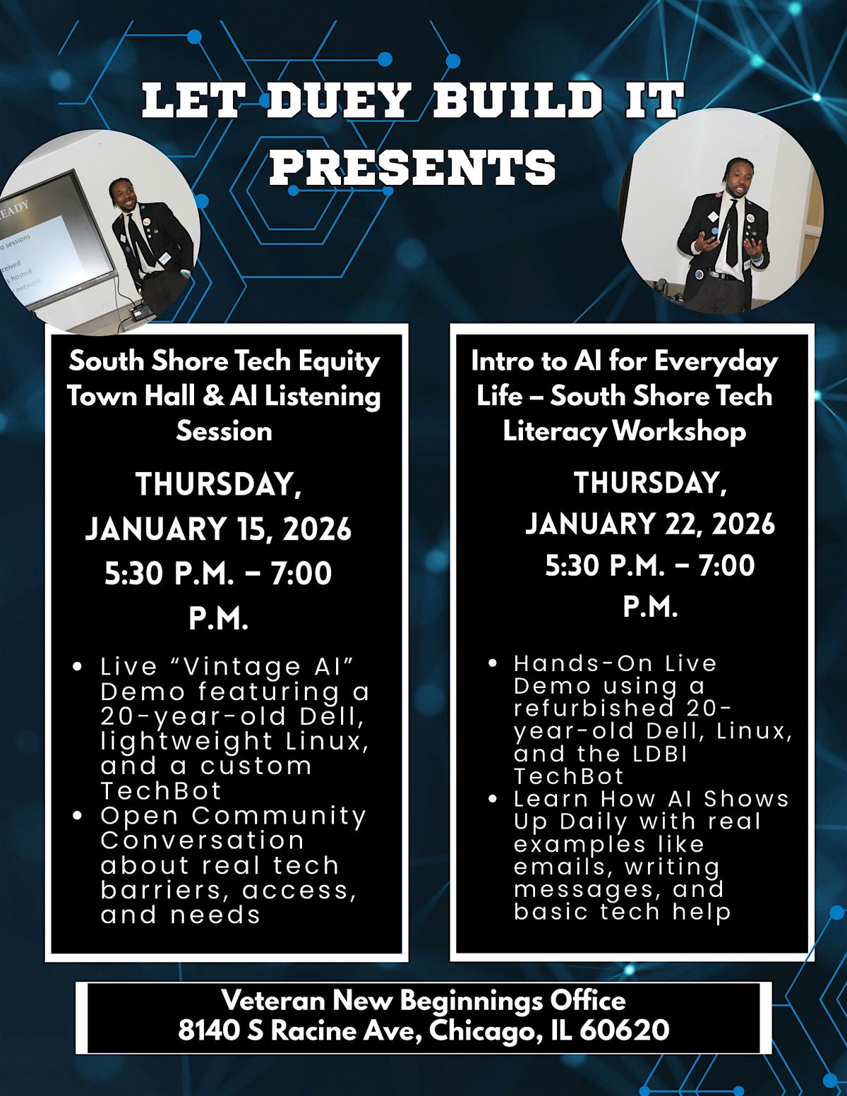 But the real focus is you. Whether you’re a veteran, senior, or student, we are gathering your stories to design our 2026 tech equity workshops. We aren't here to lecture; we're here to listen. Come watch the demo, share your tech challenges, and help us build a roadmap that actually works for our community.