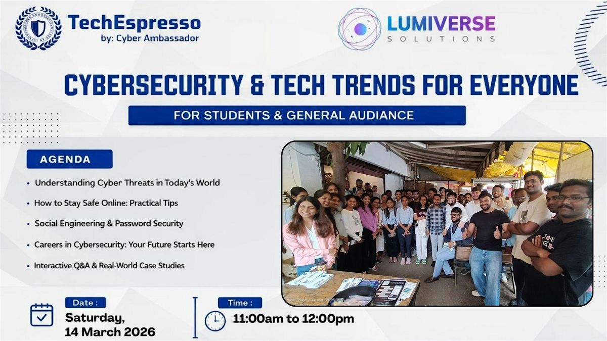 Join us for this month’s Tech Espresso Session by Cyber Ambassador, an interactive knowledge-sharing event designed for students and the general audience who want to understand the fast-changing world of technology and cybersecurity.