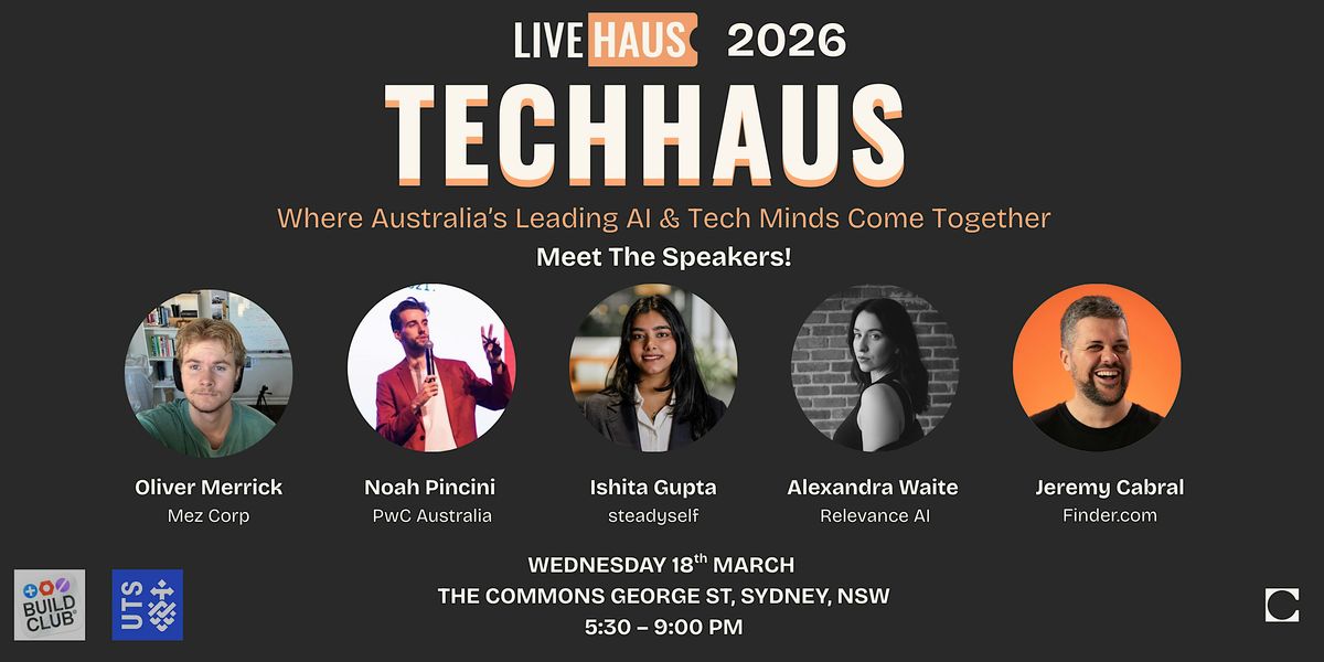 TechHaus brought to you by LiveHaus: proudly partnering with Build Club, UTS Startups, and The Commons to bring Australia’s Tech professionals together.