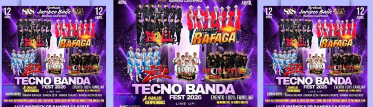 Experience the exciting event 'TECNO BANDA FEST ,BANDA RAFAGA, BANDA ZETA & MAS' at Rancho Ramirez , Ramona, CA, United States. This must-attend gathering promises an unforgettable experience for all attendees. Join us for a day filled with innovation, networking, and inspiration. Reserve your place now for an unparalleled exciting experience. #TECNOBANDAFEST,BANDARAFAGA,BANDAZETA&MAS #event #exciting #RamonaEvents #CAEvents
