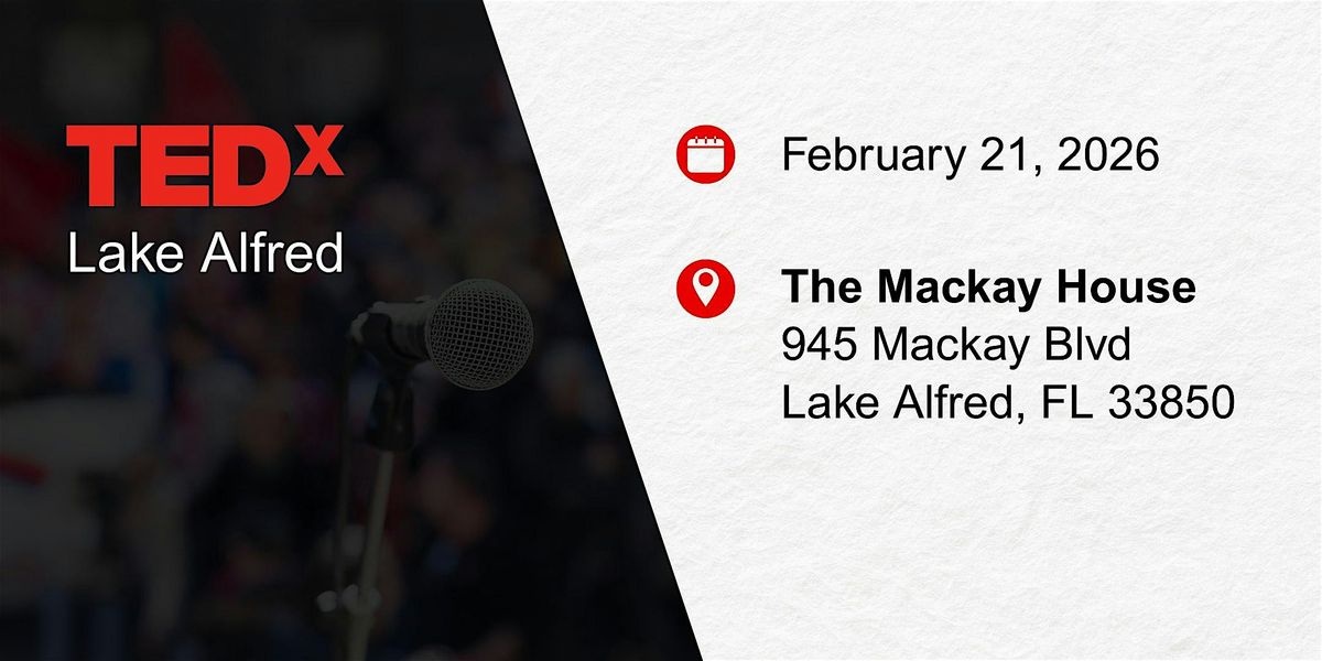 Ticket required for entry. Join us for the first of its kind in Lake Alfred! A conference style afternoon filled with inspiring TED Talks from brilliant minds both locally and beyond. Get ready to be motivated, inspired and enlightened by innovative ideas! Don't miss out on this opportunity to support local leaders and network towards your own goals. See you there!