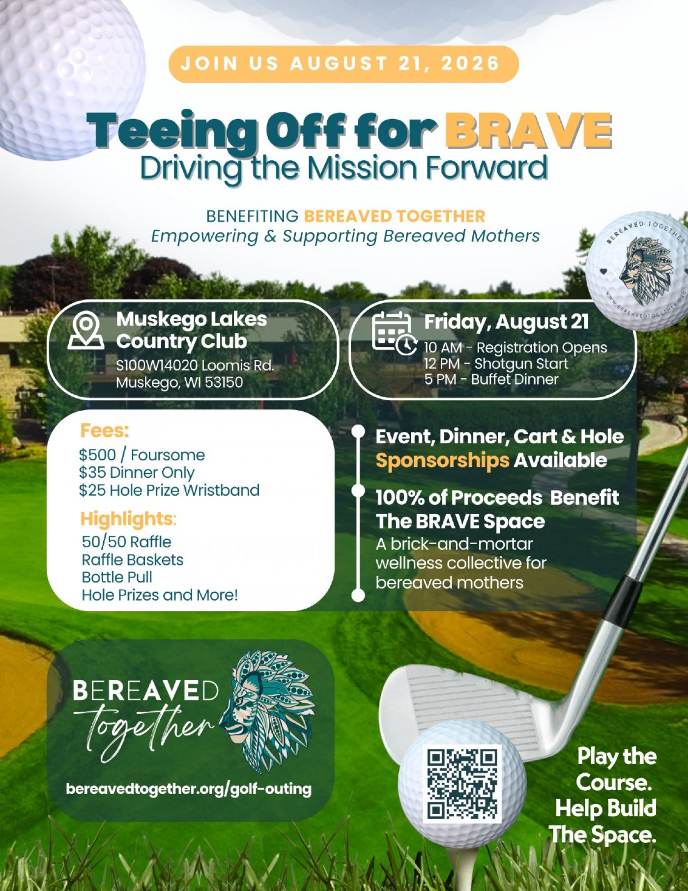Teeing Off for BRAVE is a charity golf outing benefiting Bereaved Together, a Wisconsin nonprofit dedicated to supporting mothers who have experienced the death of a child—from miscarriage through adult child loss.