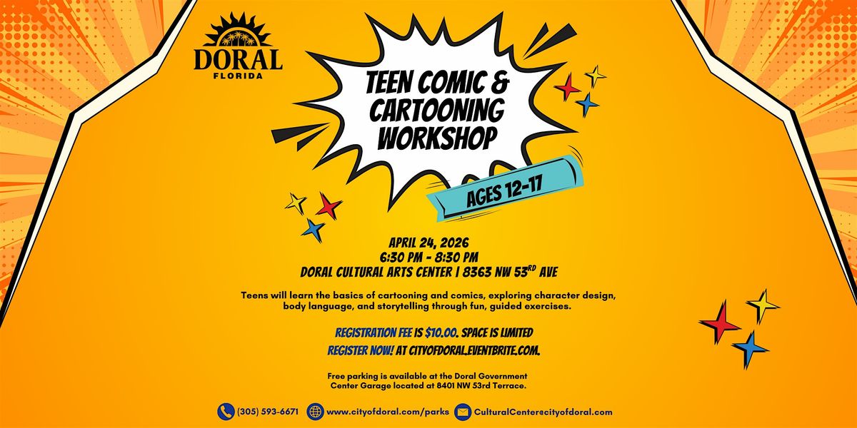 Step into the world of creativity and imagination at the Teen Comic & Cartooning Workshop, where teens will explore the exciting art of storytelling through comics! Participants will learn the fundamentals of cartooning, character design, body language, and visual storytelling through engaging, hands-on exercises. Perfect for aspiring artists ages 12 to 17, this workshop encourages self-expression and helps bring original ideas to life in a fun and supportive setting.