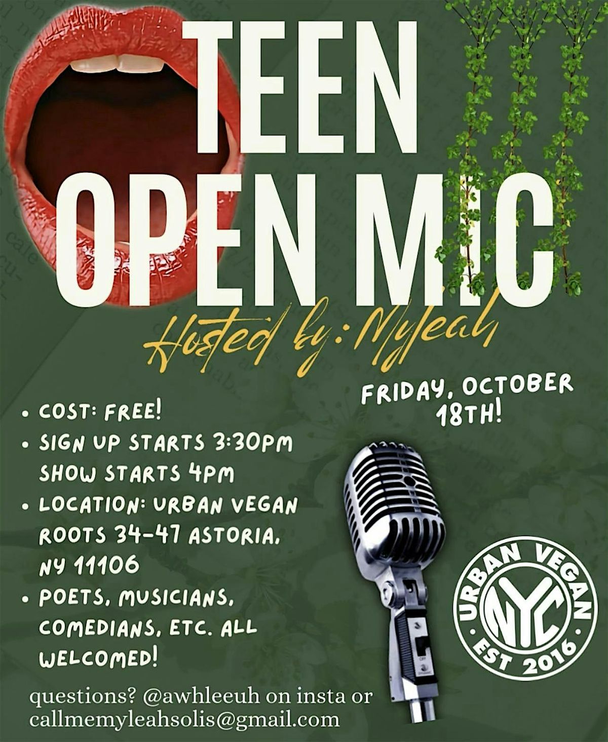 Come join us for an exciting night of youth talent and creativity at Urban Vegan Roots. Singers, Poets, Comedians all allowed! See you there