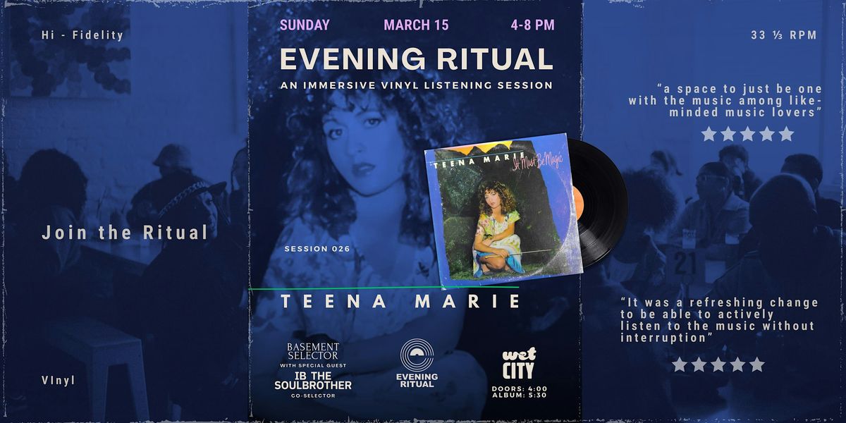 On Sunday, MARCH 15,2026 The Evening Ritual presents : TEENA MARIE "IT MUST BE MAGIC" An immersive vinyl listening session.