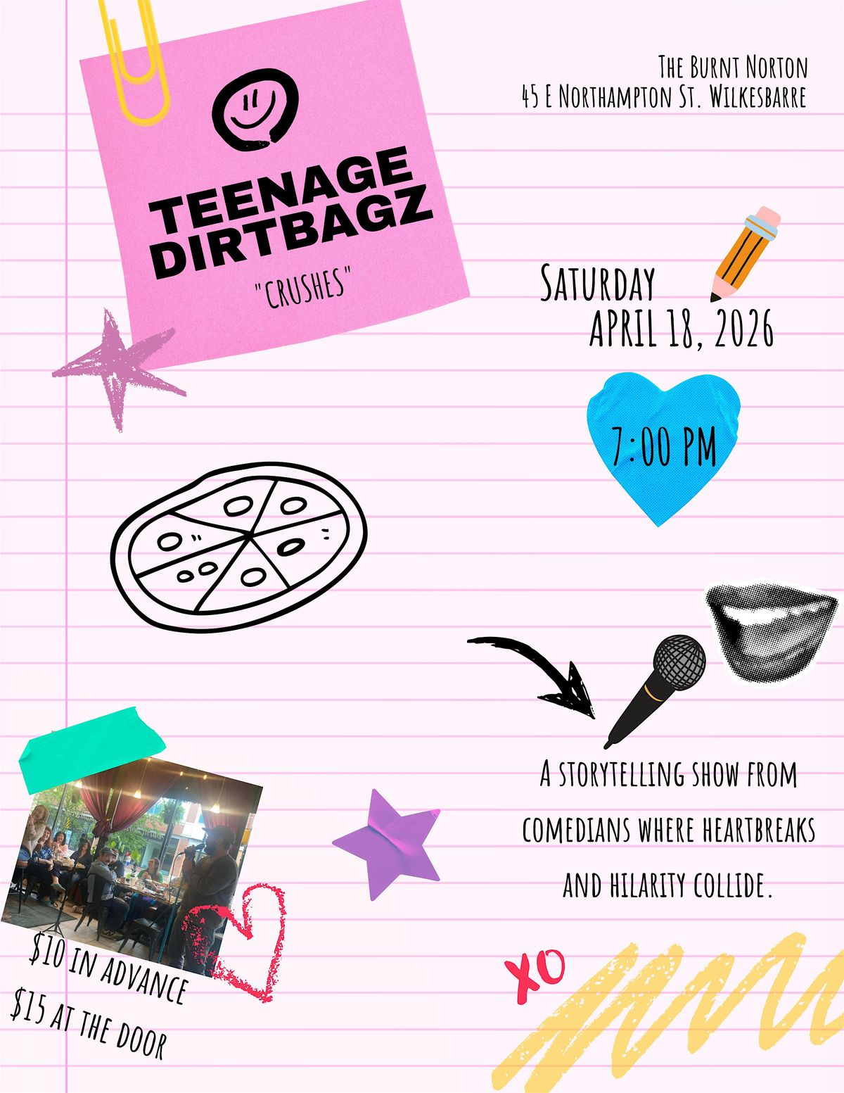 Join us for Teenage Dirtbags, a storytelling show where comedians share true, hilarious, and awkward stories about crushes, first loves, and all the chaos of teenage life. Hosted by Angelia Petrillo, this show promises laughs, nostalgia, and plenty of relatable moments.