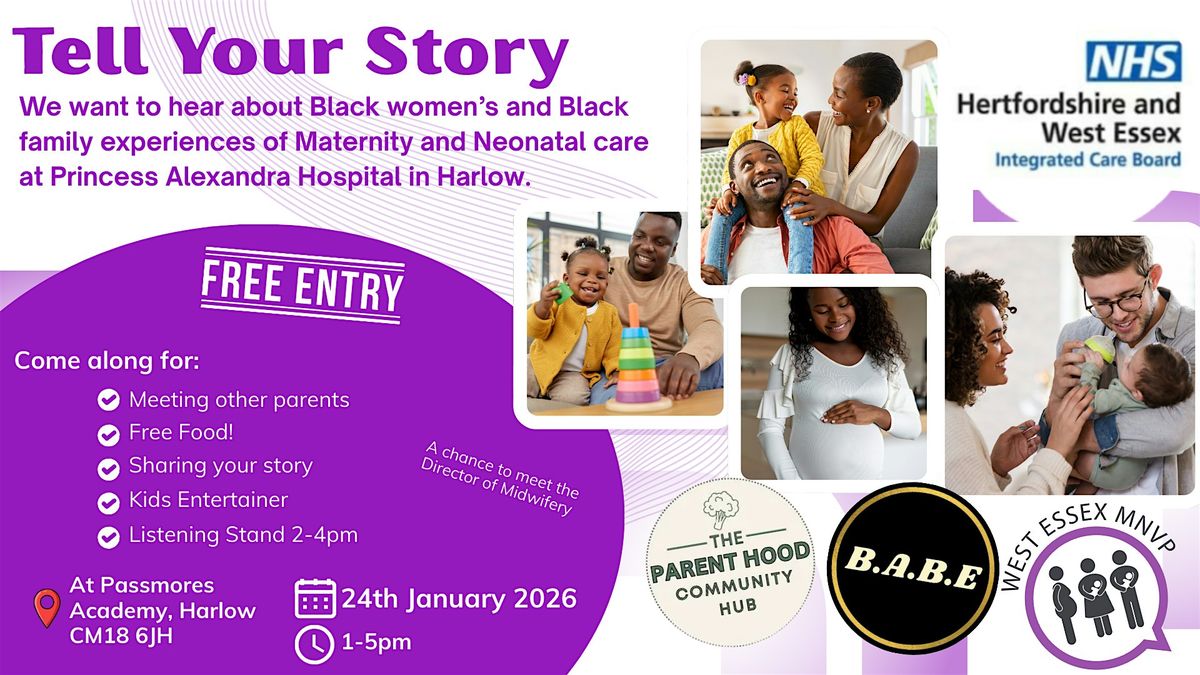 , and are excited to bring you an event for Black women and families, with a chance to talk about your experiences of Maternity and Nonatal care at Princess Alexandra Hospital in Harlow.