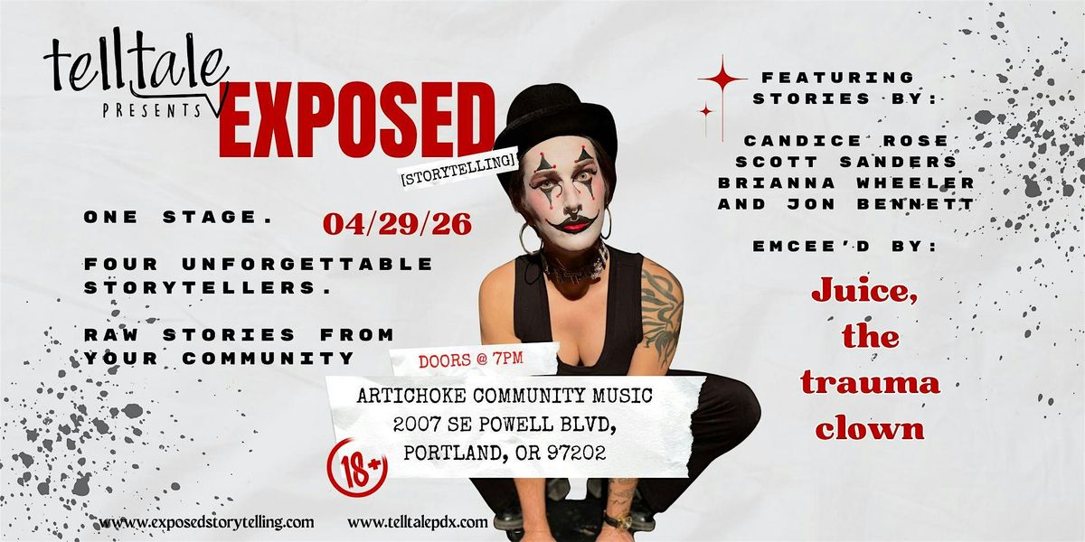 Telltale presents, EXPOSED [storytelling]. Hailing all the way from Denver Colorado, and traveling all accross the continent, EXPOSED has been helping community members share the stories of what is really happening in the lives of those around us, what we carry with us, and how we are all connected by the details of our lives.