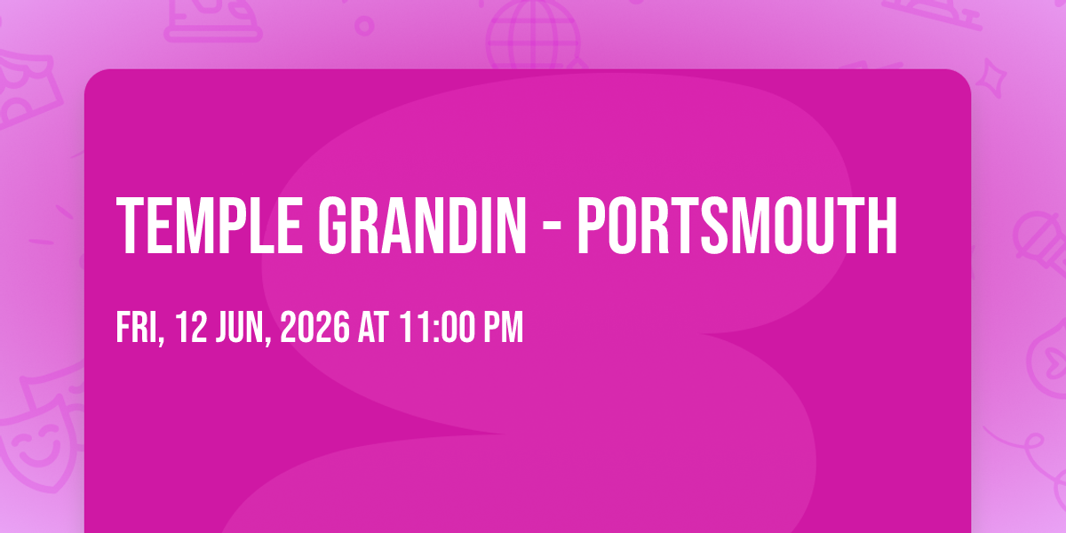 📍 Location: 43.0758, -70.7594✨ Experience the magic of Temple Grandin - Portsmouth, where moments become memories that last a lifetime! 🏛️ The iconic The Historic Theater at The Music Hall in Portsmouth, NH sets the perfect stage for an unforgettable celebration on June 12th, 2026 at 11:00 PM. 🌟 It's been a curated experience that brings together the best of entertainment and innovation, creating an atmosphere of wonder and excitement. From the moment you arrive, you'll be immersed in a world where the ordinary transforms into the extraordinary. 🎊 Book early to secure your place in what promises to be an event that will be talked about for years to come!