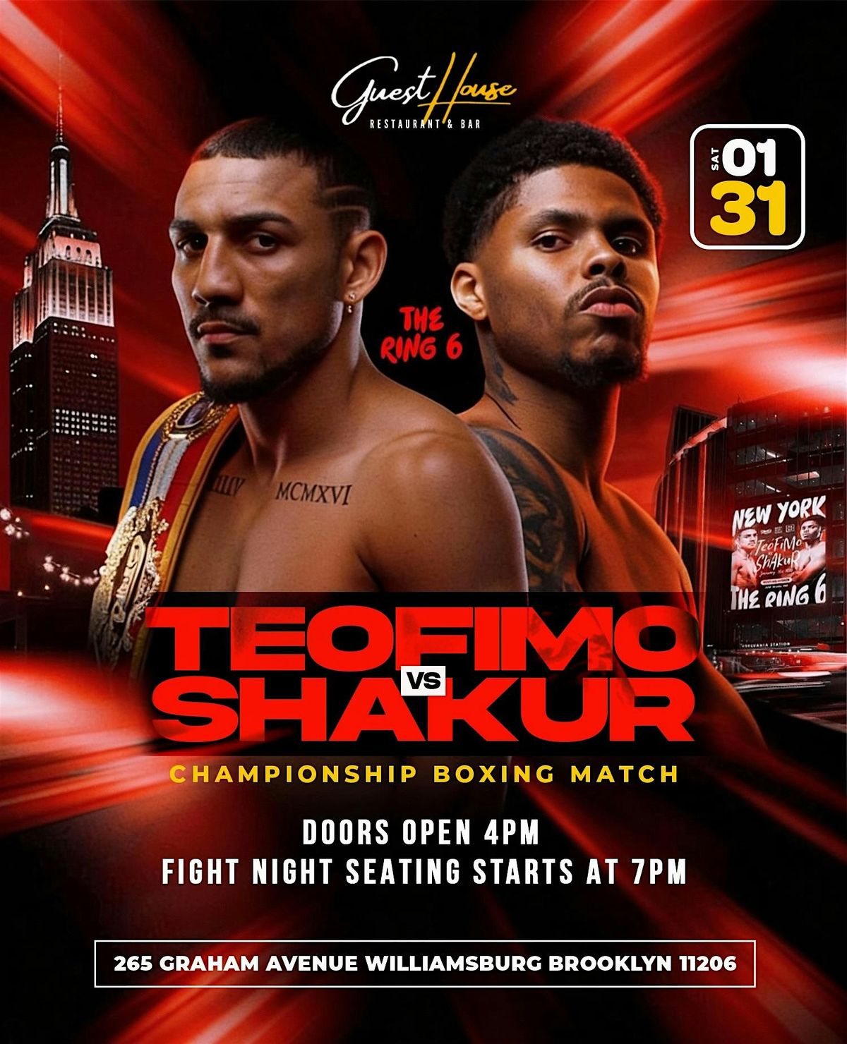 Join us for an electric Championship Boxing Night as Teofimo Lopez vs Shakur Stevenson goes head-to-head LIVE on big screens at GuestHouse Restaurant & Bar.