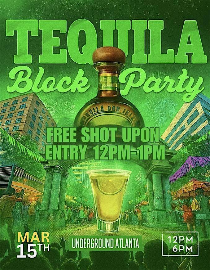 Get ready for one of the biggest day parties of the spring! Weāre taking over Underground Atlanta for a full-scale Tequila Block Party celebrating St. Patrickās Day Weekend with nonstop vibes, drinks flowing, and the city outside.