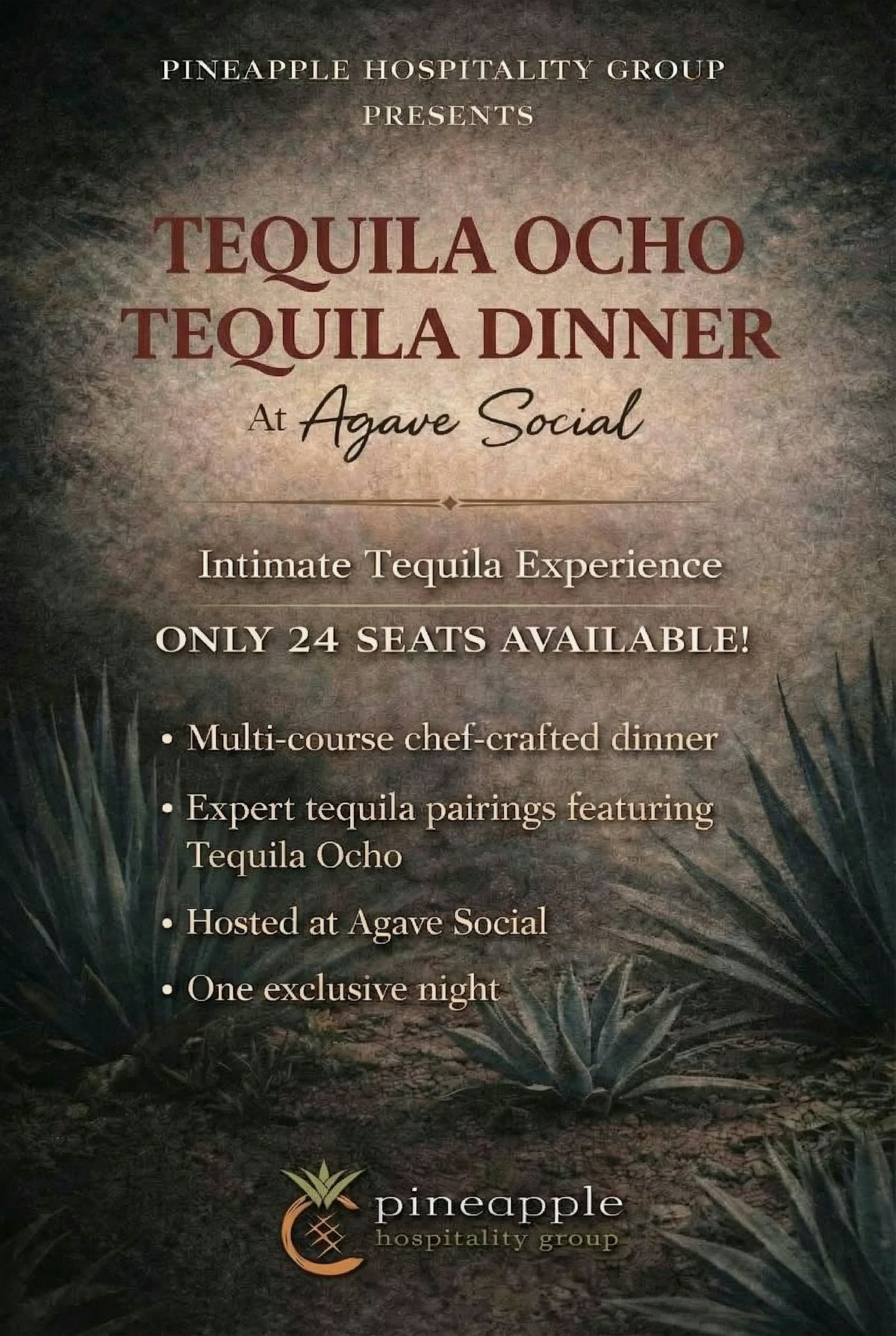Tequila Ocho dinner: 4 bold courses, 4 limited agave pours, stories from farm to glass, seriously fun pairings and uncommon hospitality all