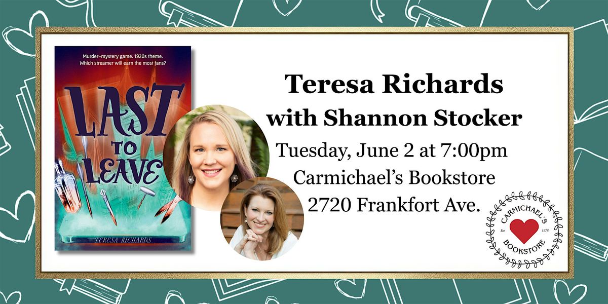 Teresa Richards writes young-adult fiction and is a member of SCBWI and the Storymakers Guild. She’s a California girl in Kentucky and loves hiking, playing the piano, and impromptu dance parties. Teresa and her husband have five kids and an anxious dog. When she’s not busy writing or momming, she’s probably singing or hiding in the house with a treat she’s not planning to share. She’s the author of Emerald Bound and Flippin' Skaters, and Last to Leave is her hardcover debut.