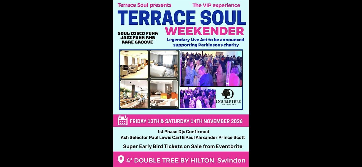 The Farewell Terrace Soul VIP Weekender takes place over the week end of Friday 13th and Saturday 14th of November 2026 . Phase 1 DJ's already confirmed include residents Ash Selector and Paul Lewis ( Solar Radio ) Carl Bassett ( GY Radio ) Paul Alexander ( JFSR Radio ) + Prince Scott, with more to be added .