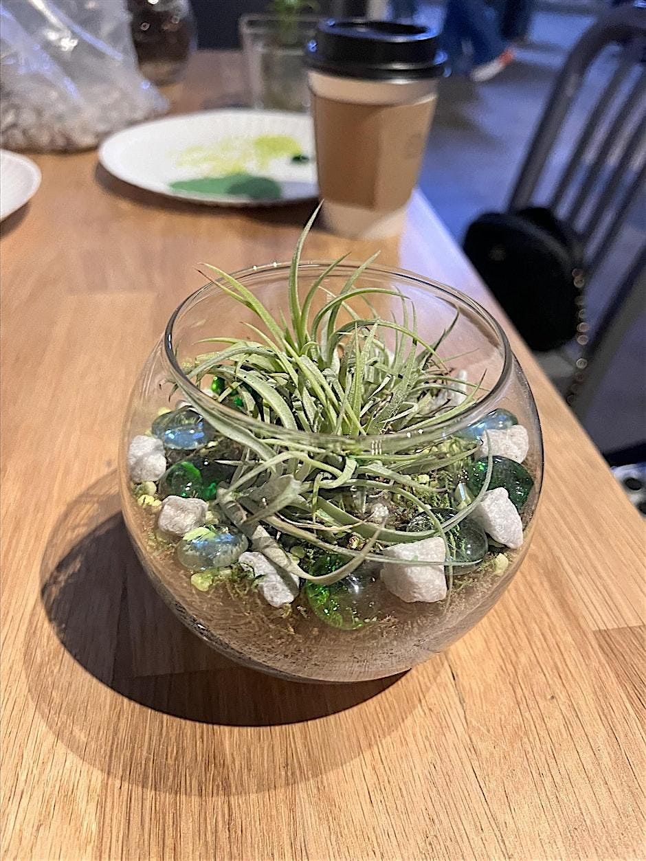 The class fee includes a standard open-top terrarium with gravel, soil, decorative moss, and your choice of an air plant, succulent, or small tropical plant. Add-on options will also be available to create a carnivorous plant bog garden.