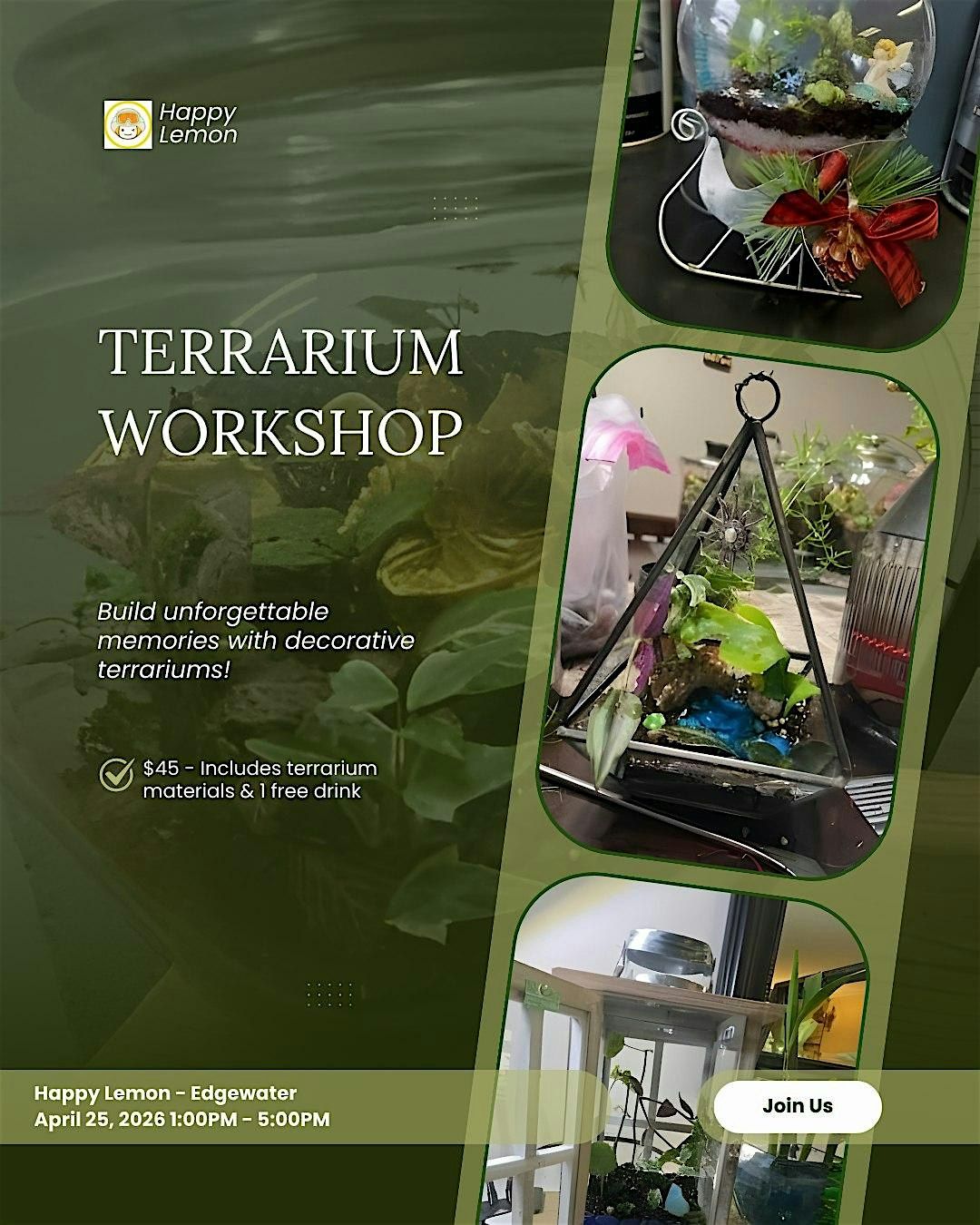 In our Terrarium Workshop, you'll have the choice between building an open or closed ecosystem using a massive variety of colorful sands, natural rocks, whimsical figurines, and lush plants.