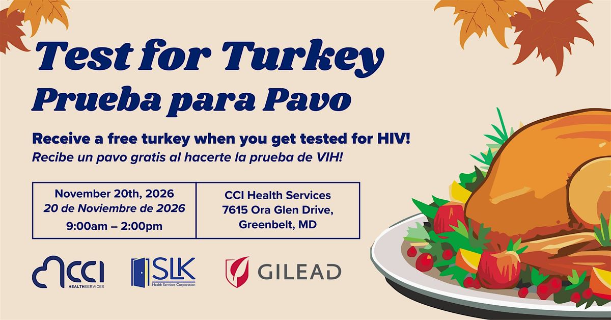Join CCI Health Services, SLK, and Gilead for a Test for Turkey event. Get a free Turkey when you test for HIV!