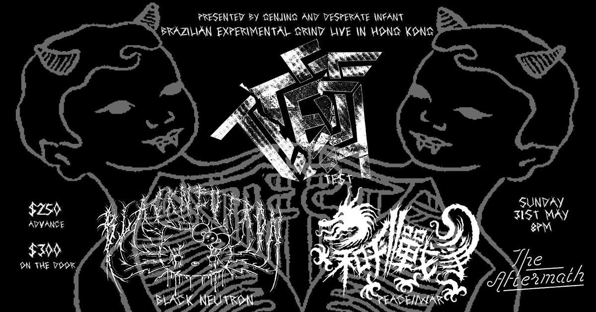 São Paulo deathgrind duo TEST lands in Hong Kong for the first time! Formed in 2010, they've performed at Obscene Extreme and Maryland Deathfest and opened for acts such as Mr. Bungle, King Diamond, Napalm Death, Carcass, Cannibal Corpse, Exodus e Brujeria, Mayhem, Mortician, and Dillinger Escape Plan.