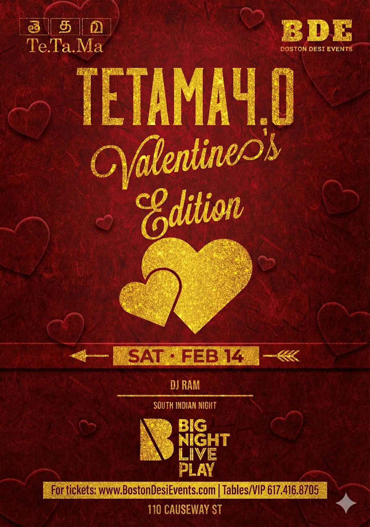 Boston Desi Events (BDE) & Te.Ta.Ma are back with the city's most anticipated South Indian Night: Te.Ta.Ma 4.0 - Valentine's Edition!