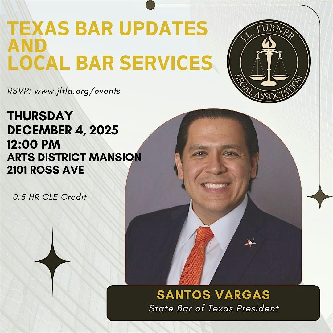 President Vargas will visit with JLTLA members and provide updates about the State Bar of Texas, Local Bar Services and More! 0.5 Ethics CLEAbout this Event
