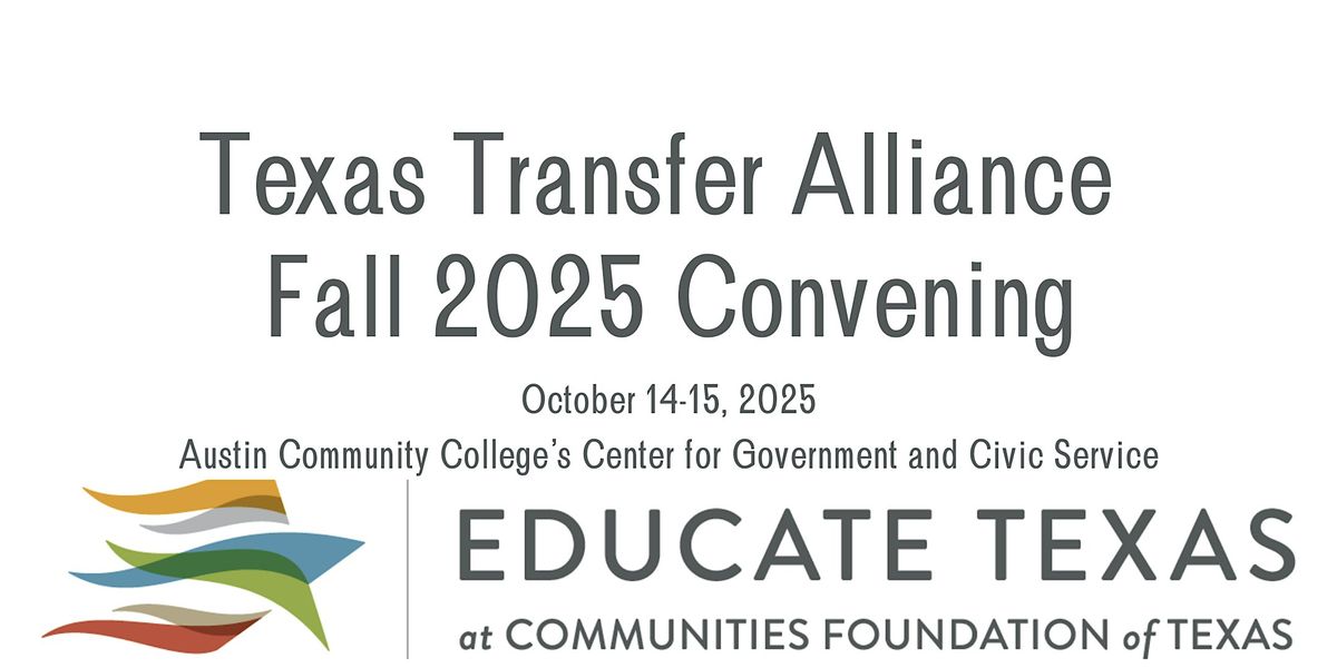 The Texas Transfer Alliance (TTA) Fall 2025 Convening will be held at Austin Community College’s Center for Government and Civic Service at 1218 West Avenue in Austin. The convening will begin on Tuesday, October 14 with registration at 9 am and will conclude on Wednesday, October 15 by 12 pm.