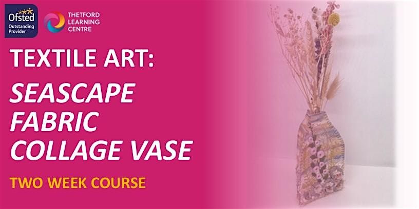 For this workshop you will be taught how to create a collage themed fabric vase that will be free standing and can be used to hold died flowers.