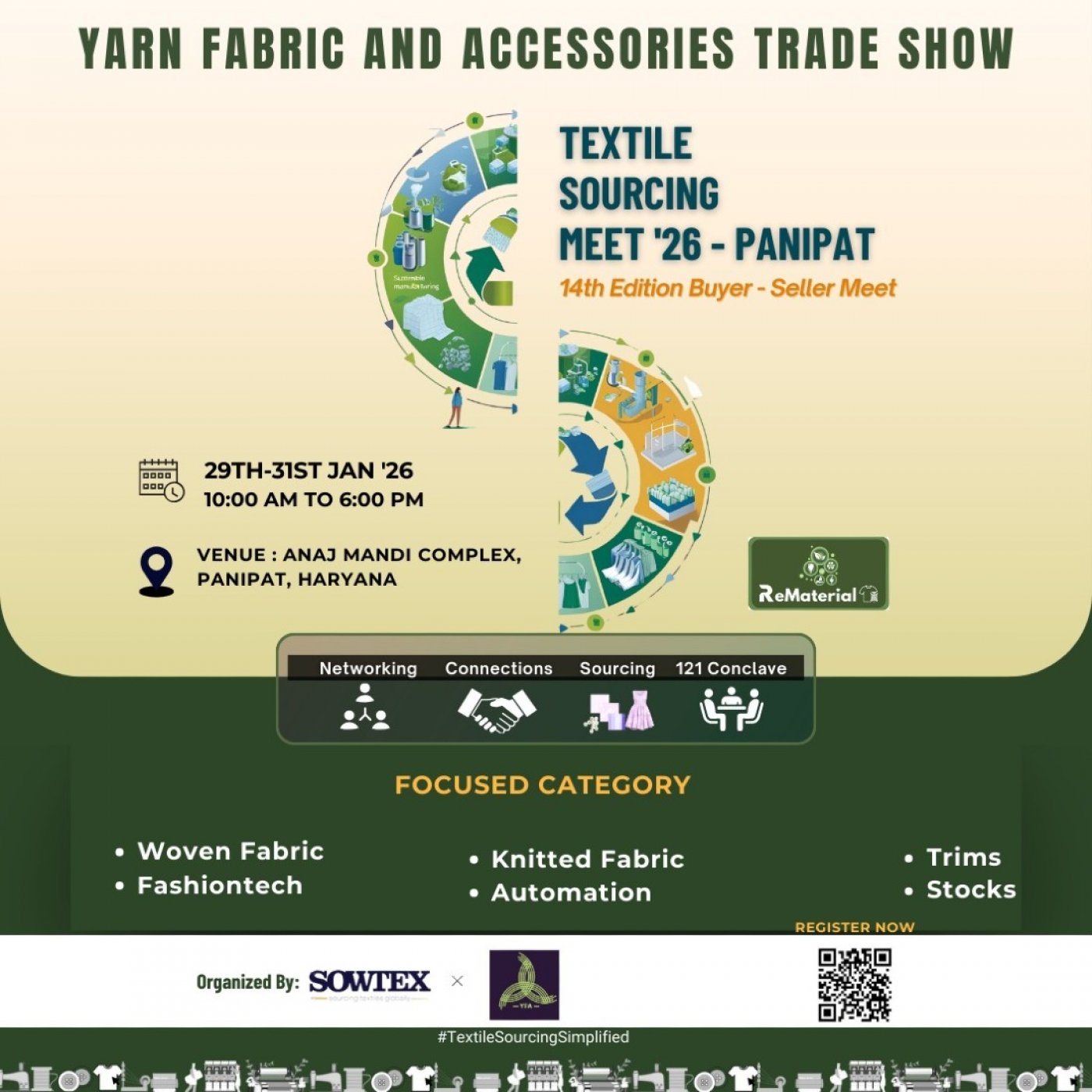 🌟 Textile Sourcing Meet ’26, Panipat_Join YFA & SOWTEX at India’s top Buyer-Seller platform!