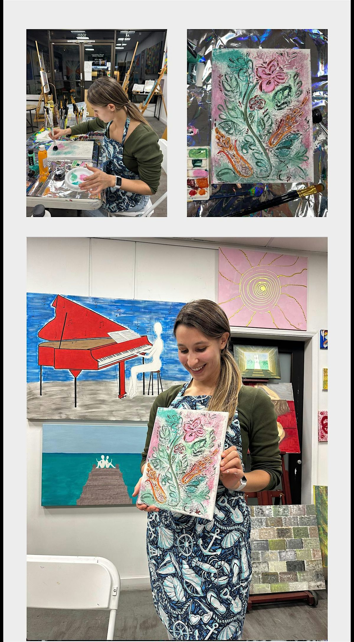 Led by artist and founder Aziza Azizova, these classes are all about freedom of expression, self-discovery, and joy through texture. You’ll learn to build depth, emotion, and dimension into your art using tools like modeling paste, palette knives, natural elements, and more. All materials are provided — just bring your imagination!