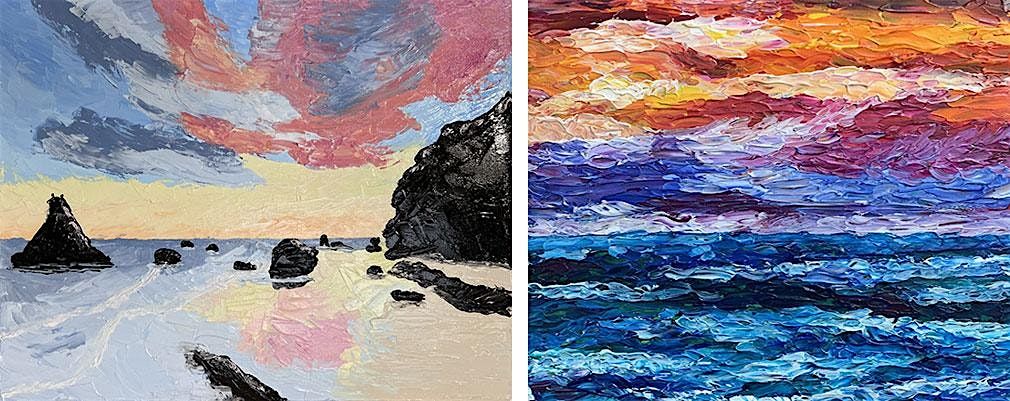 Step beyond the brush and into the world of texture in this hands-on Acrylic Textured Landscape class with Jen. Learn how to transform your acrylic paintings by incorporating GOLDEN Gels and Pastes to build depth, movement, and dimension while creating your own seascape or sunset-inspired painting.
