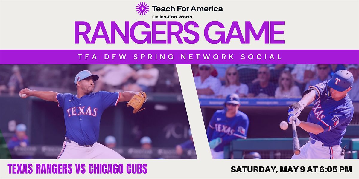 Join us on Saturday, May 9 at 6:05 PM as the Texas Rangers take on the Chicago Cubs at Globe Life Field. This is a great opportunity to reconnect with fellow alumni and corps members, expand your network, and enjoy a fun spring evening together.