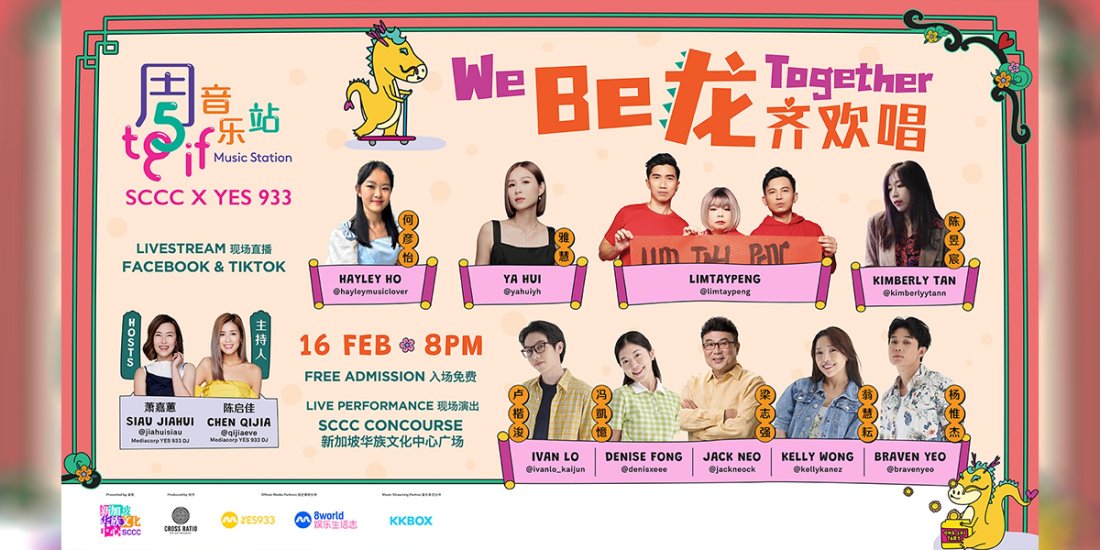 This February We Be龙 Together! Soak in the Chinese New Year vibes and sing along to performances by artistes Ya Hui Jack Neo Denise Fong Kelly Wong Braven Yeo Ivan Lo LimTayPeng Kimberly Tan and Hayley Ho!