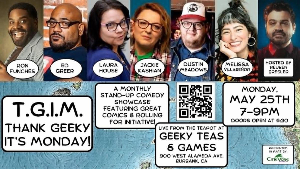 Start your week off right with fellow geeks and standup lovers at TGIM! Join us for another month of geeky comedy and rolling for initiativeAbout this Event