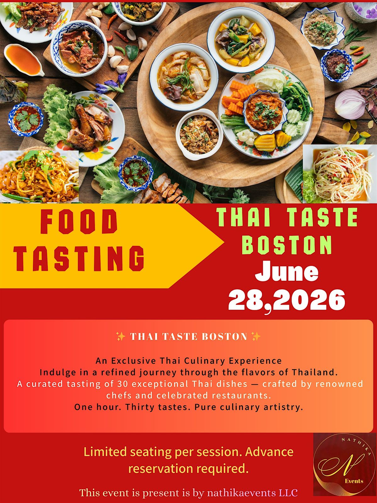 This visual represents the Thai Taste Boston Food Tasting Experience, where guests can explore the rich diversity of authentic Thai cuisine in one place.