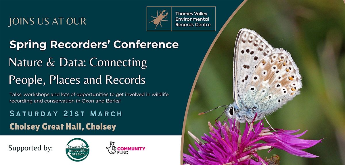 A great opportunity for our biological recording community to come together and share updates and information on what we've all been doing in Berkshire and Oxfordshire. Join us at Cholsey Great Hall , for our Spring Recorders' Conference 2026, Nature & Data: Connecting People, Places and Records!