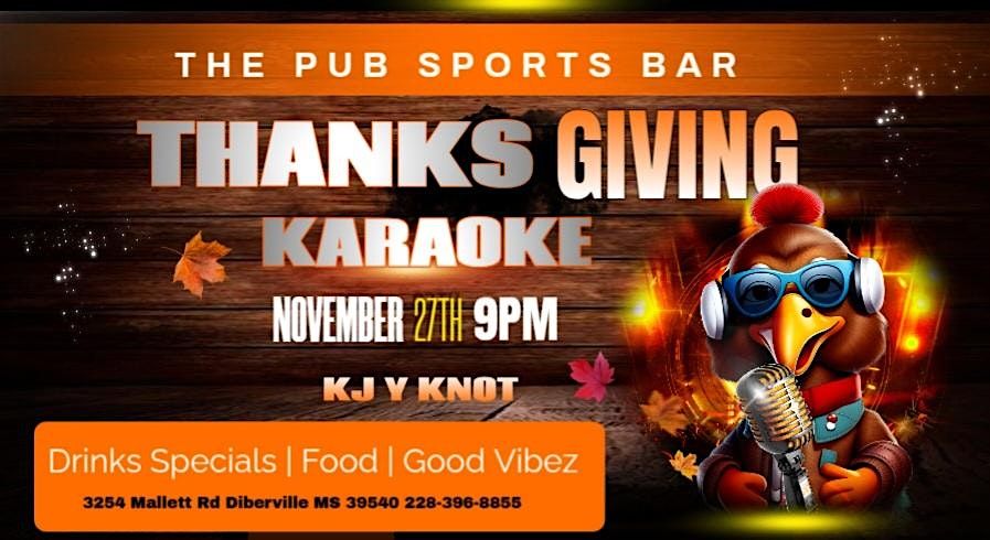 Grab your family and friends and come get your sang on with some Thanksgiving Karaoke!!! Karaoke kicks off at 9pm with KJ Y Knot.About this Event