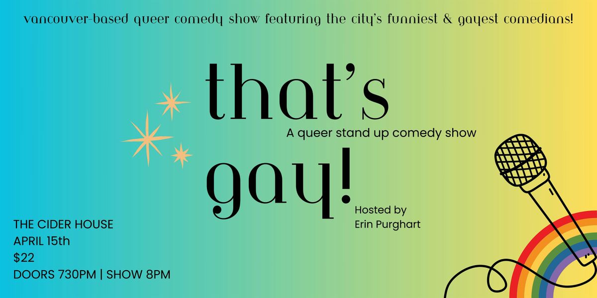Vancouver-based queer comedy show featuring the city's funniest & gayest comedians is partnering up with The Cider House! Come laugh with us.