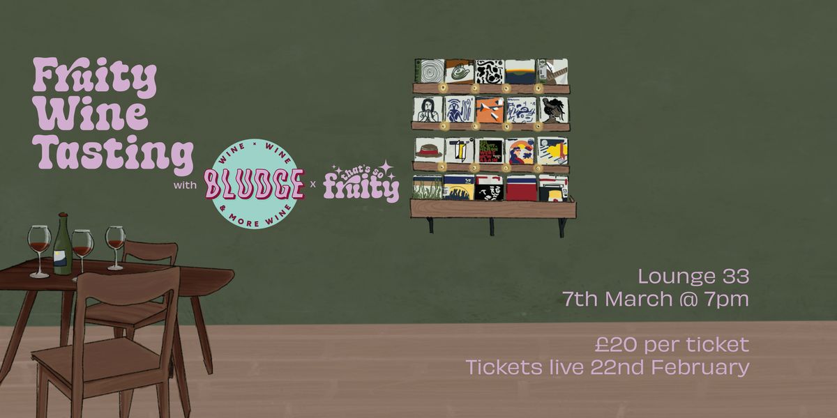 Join us for a queer fruity themed wine tasting with Bludge wine, a local queer owned wine company, at Lounge33, a café and vintage record shop!