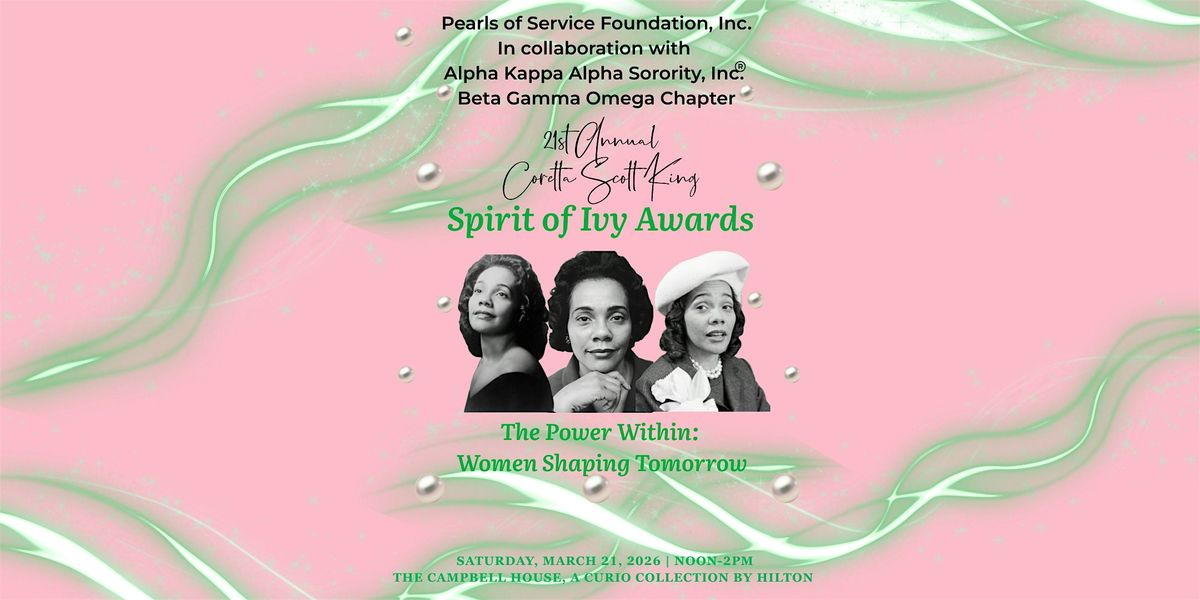 The Coretta Scott King Spirit of Ivy Awards presented by the Pearls of Service Foundation Inc. in collaboration with the Beta Gamma Omega Chapter of Alpha Kappa Alpha Sorority, Inc. honors local women who exemplify, like Mrs. King, the Spirit of the Ivy - Strength and Endurance.