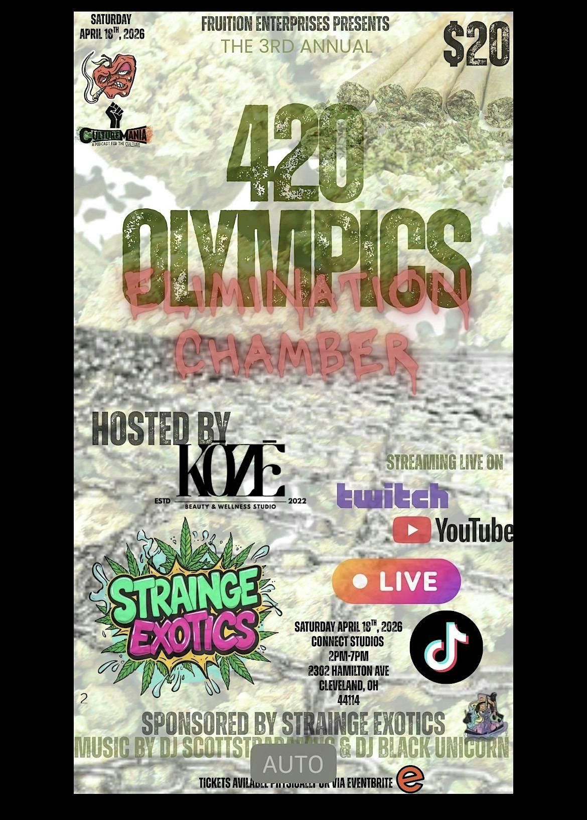 Join us Saturday April 18th,2026 for The 3rd annual 420 Olympics sponsored by Strainge Exotics and brought to you by Fruition Enterprises!!About this Event