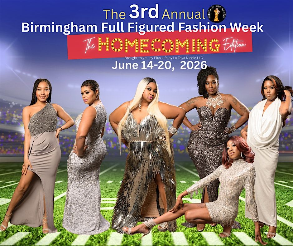 Birmingham Full Figured Fashion Week, "The HOMECOMING Edition" Runway Fashion Show, Academic Scholarship Presentation, and Concert Showcase.
