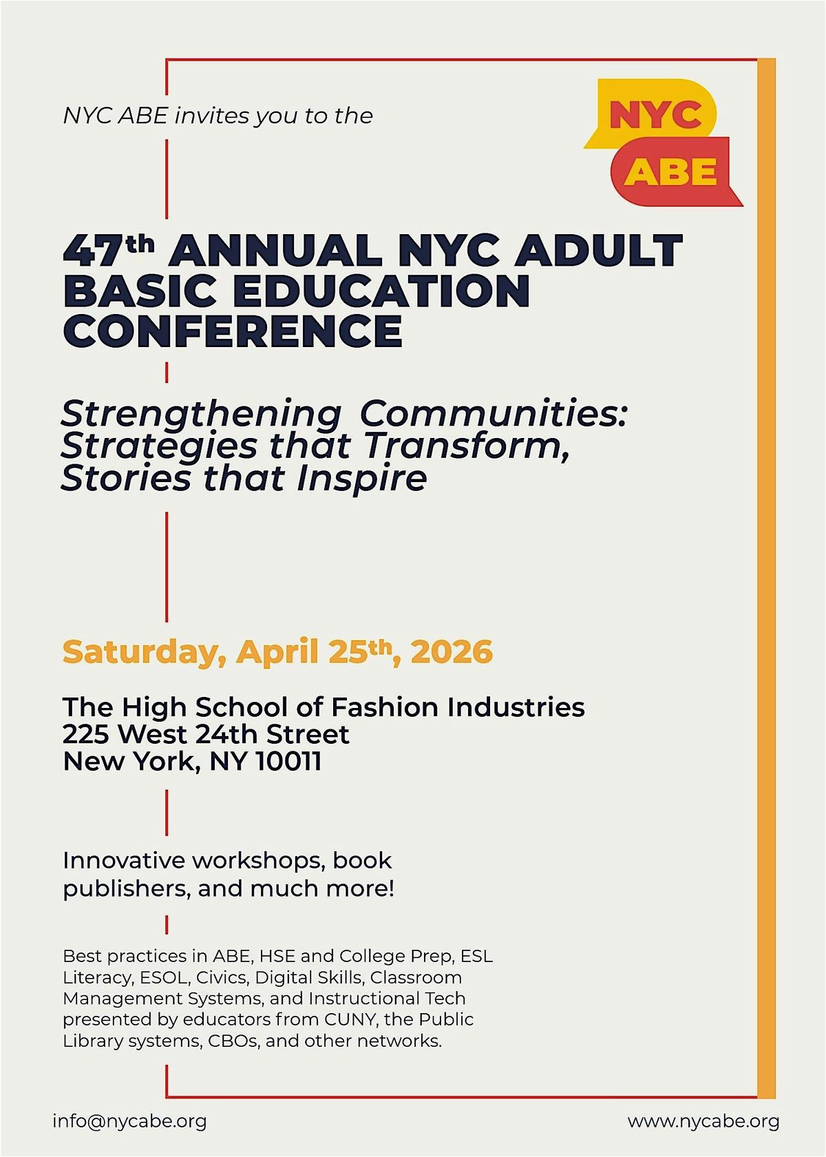 Exhibit at the 47th Annual New York City Adult Basic Education (NYC ABE) Conference!