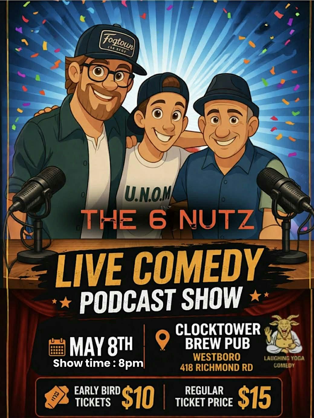 Welcome to the 6Nutz Podcast Live Podcast Episode! It’s a laid-back mix of stand-up, conversation, and off-the-cuff moments between comedians, with the audience right in the middle of it all. Nothing is scripted, and the energy comes from whatever happens in the room that night. Join us!