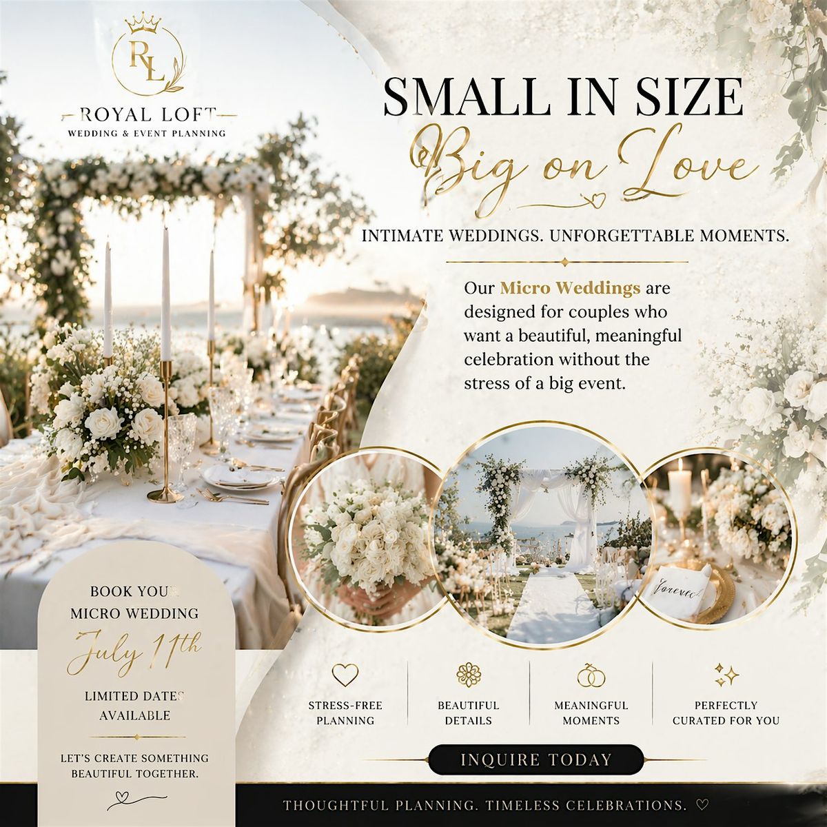 Welcome to The 7.11.26 Royal Loft Luxury Wedding Experience!