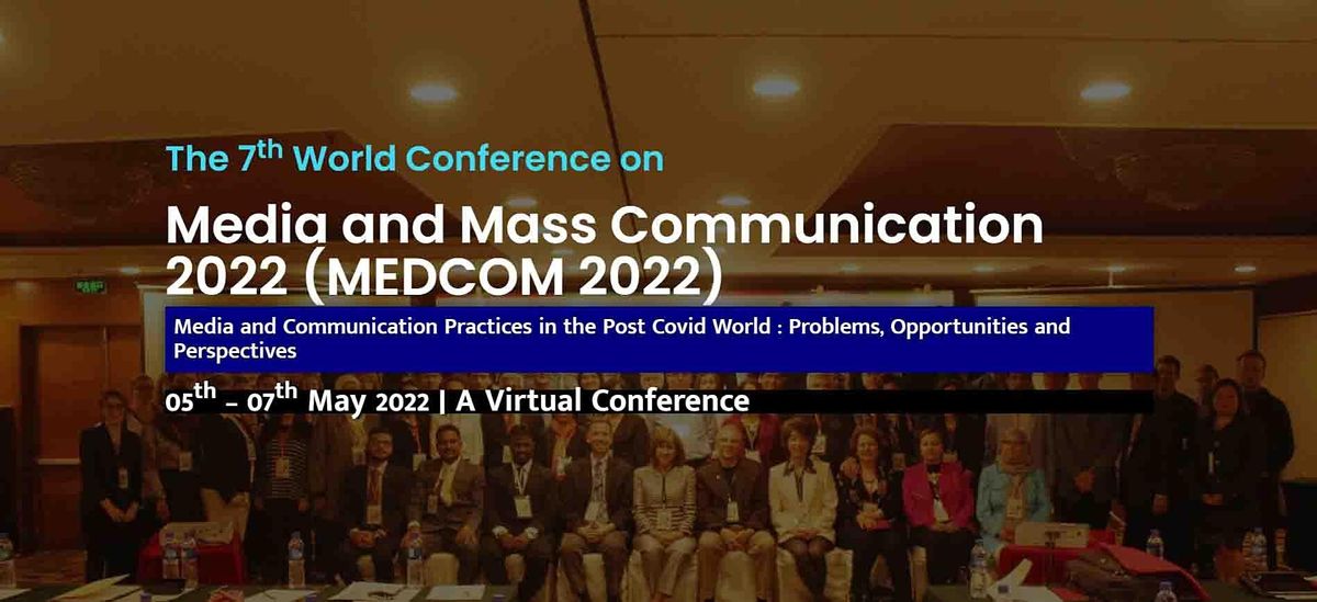 Welcome to The 7th World Conference on Media and Mass Communication 2022 (MEDCOM 2022) which will take place from 05th – 07th May 2022 in Virtual Platform. We hope the MEDCOM 2022 unities diverse researches and case studies from all over the world, parallel sessions while offering many networking and publishing opportunities. Discover the latest trends and challenges on the field at this leading conference and enjoy everything the Virtual Conference has no offer.