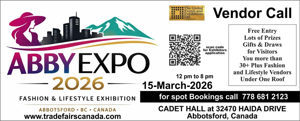 #AbbyExpo2026 #VendorCall #AbbotsfordBC #BCBusiness #FashionExpo #LifestyleExhibition #SupportLocalBC #BusinessGrowth #TradeShowCanada #AbbotsfordEvents