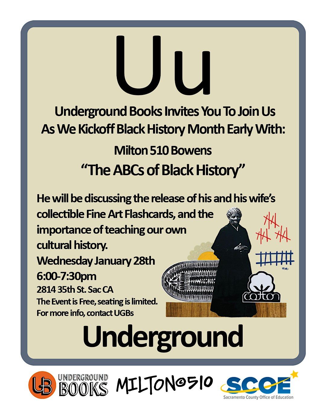 Join us in person for a fun and enlightening journey through Black history with Milton Bowens! Discover amazing stories, important figures, and powerful moments that shaped our world. Whether you're new to the topic or a history buff, this event is packed with cool facts and engaging discussion. Be among the first to learn about the release of Milton and his wife's collectivle Fine Art Flashcards, and the importance of teaching our own cultural history. Attendees will also have an opportunity to win an original Milton "510" Bowens art piece!