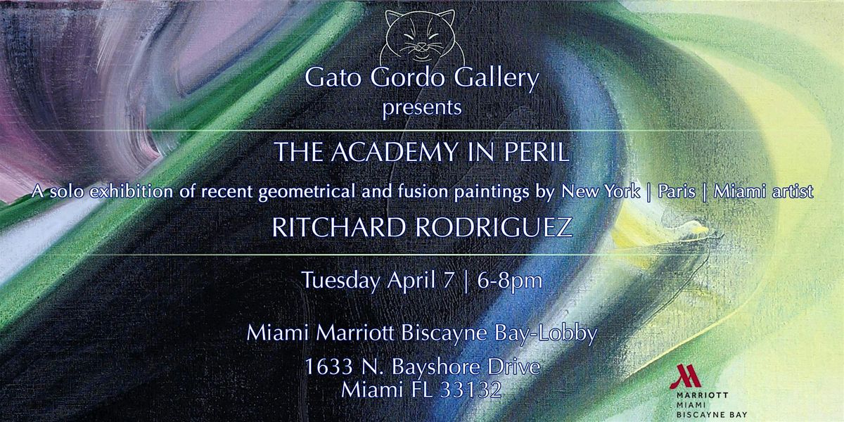 Presented by Gato Gordo Gallery at its hotel location, Miami Marriott Biscayne Bay, Ritchard Rodriguez’s “The Academy in Peril” explores the tension between past and present, merging bold new abstractions with transformed works from his Paris years.