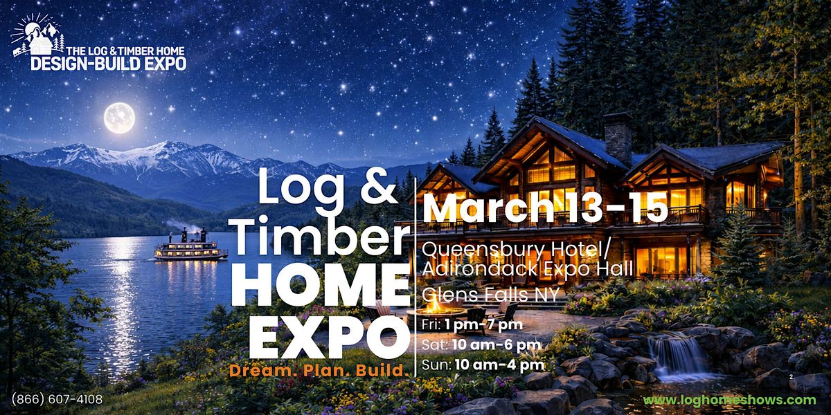 The Log & Timber Home Design-Build EXPO is coming to The Queensbury Hotel (Adirondack Expo Hall). Discover Log Home, Log Cabin, and Timber Frame Home companies, builders, and suppliers.
