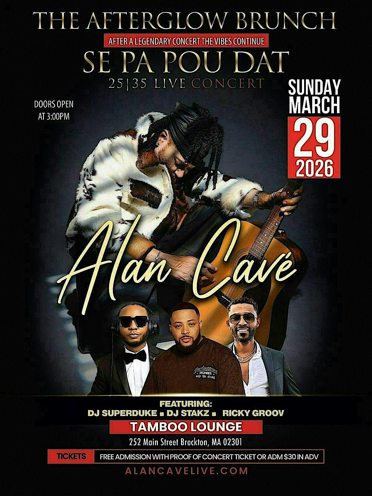 Keep the celebration going at the Official Alan Cavé Concert After Glow Brunch — the perfect way to close out an unforgettable weekend.