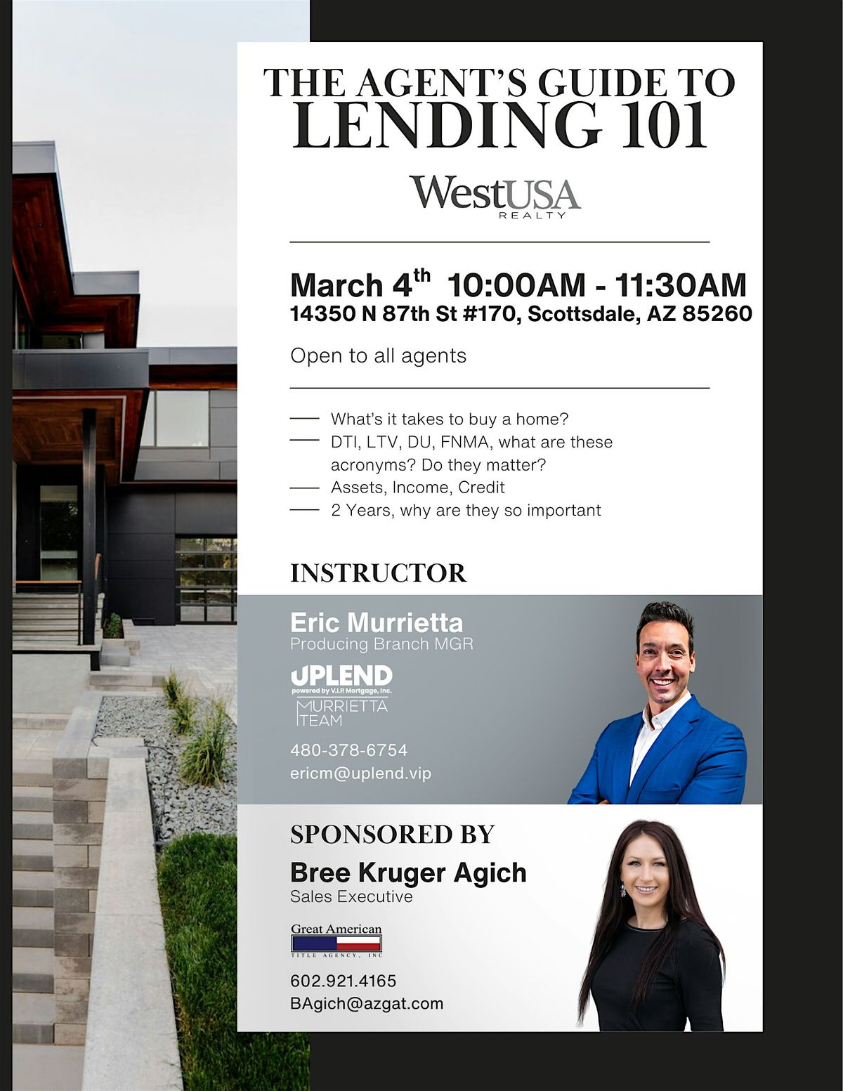 Join us in person for The Agent’s Guide to Lending 101 and master the basics of home loans!About this Event